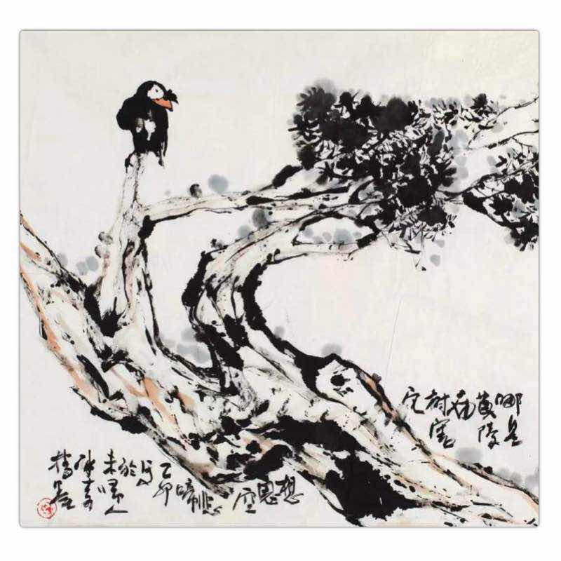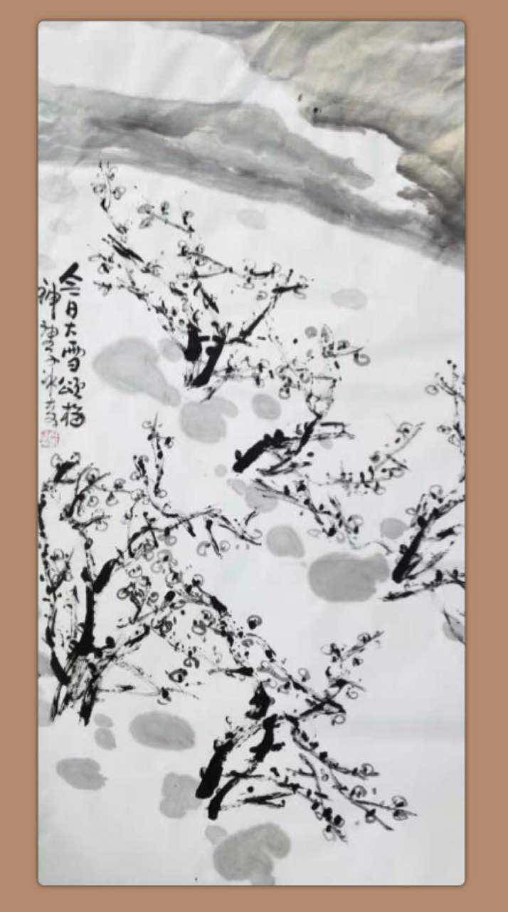 段落短评:画梅全不用颜色,只用水墨深浅来加以表现。浓谈相间的水墨晕染而成的墨梅。野趣盎然,以冰天雪地为衬托,把梅雪的精神结合一起给人以热烈蓬勃向上之感。气势如虹“忽如一夜风雪至,漫天梅花相竞开”用单纯的水墨和清淡野逸的笔致,生动地传达出了梅花的清肌傲骨,寄托了文人雅士孤高傲骨与世无争的情怀。“鹤随处士乘风远,古铁横撑耐晓霜”北宋林逋不肯入仕。隐居西湖孤山,植梅养鹤直至终老。梅妻鹤子,由此传名。