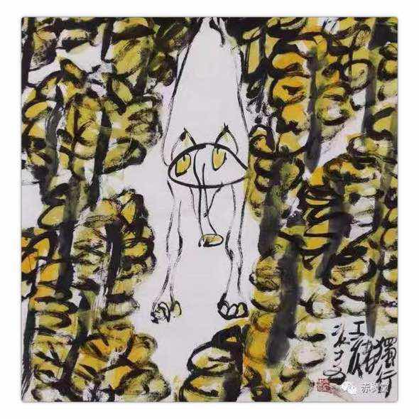 因为深深地领悟到指画的艺术生命即在于一个“拙”字,为了“拙趣”,他曾经不分昼夜地探索,无数次地磨破了手指;在水与墨的世界里,他也曾经有过忧郁,失落,但他最终在诗的反讽里找到了绘画艺术的文学内涵。