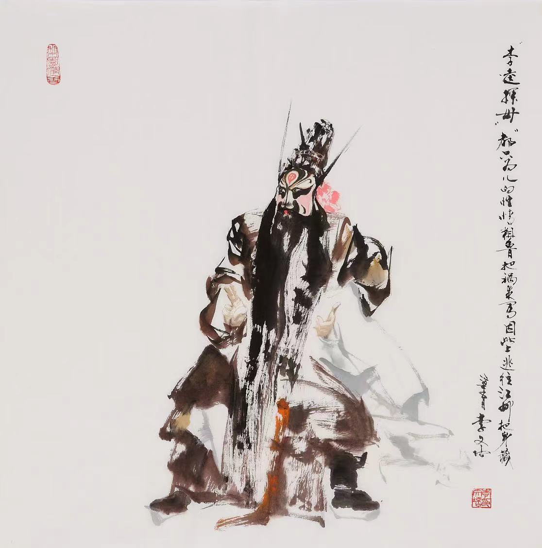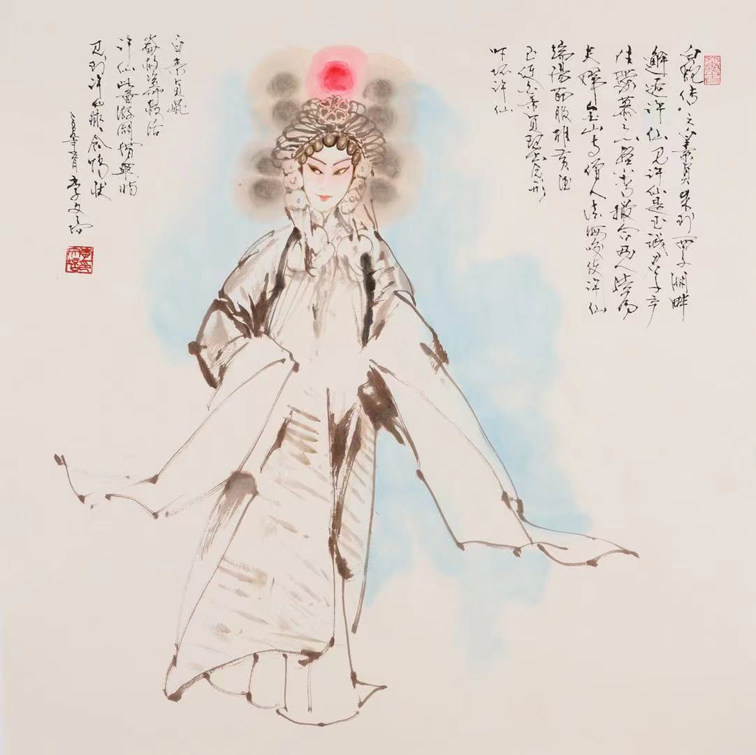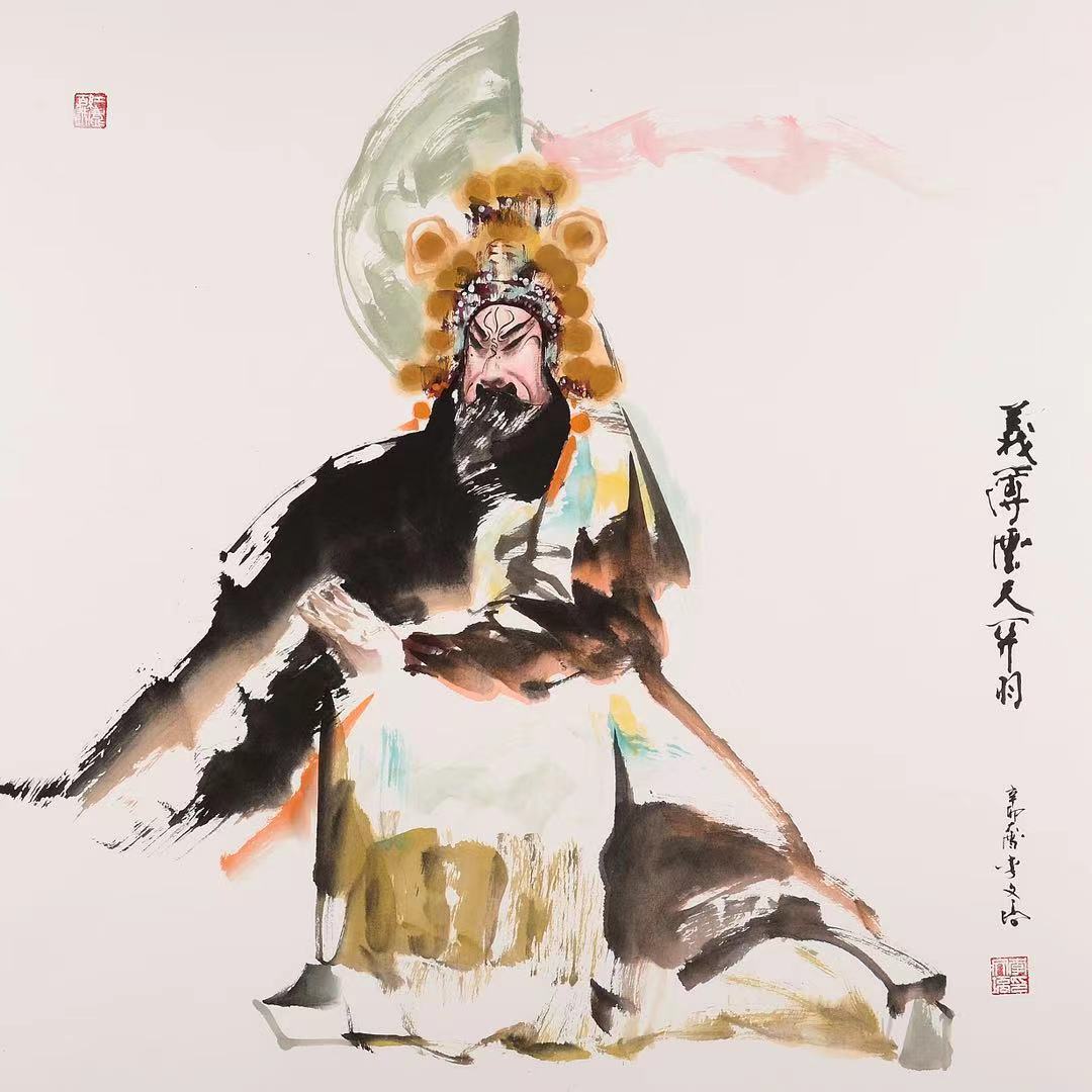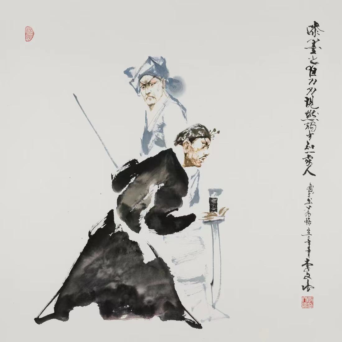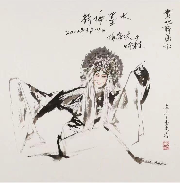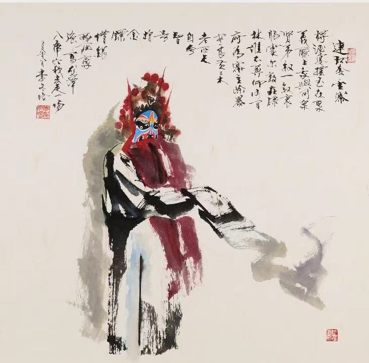 说“前无古人,后无来者”可能有些夸张,但我的友人李文培先生在他五十多年的艺术实践中,义无反顾地创建了一座中国人物画的里程碑:戏曲人物。在他的丹青笔墨下,人物不仅仅映现了一种文化,一种历史;也不仅仅以虚表实,以简代繁,让人物的命运产生久远的哲理反思,他创造的每一个戏曲人物既有瞬间亮相的美,又赋予行云流水般的韵律,我们好像感受到人物活灵活现的灵魂,这是艺术创造的极高境界,也是他的作品之所以让人想象无限的魅力。