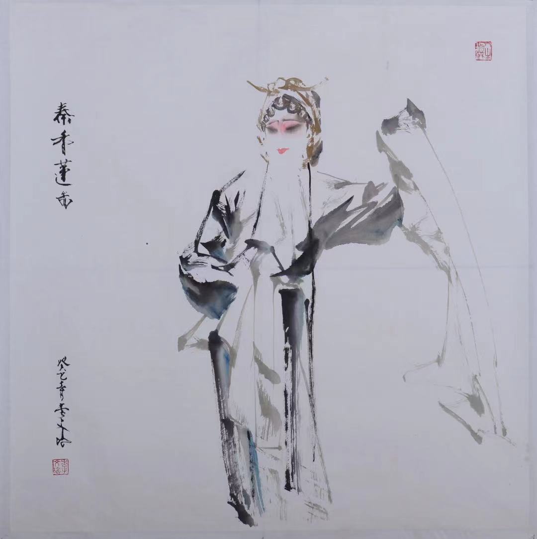 此剧为张(君秋)派代表作,刻画了一个不向恶势力低头的古代妇女形象。画家以秦香莲的肢体动作表达她呼天唤地的悲情。