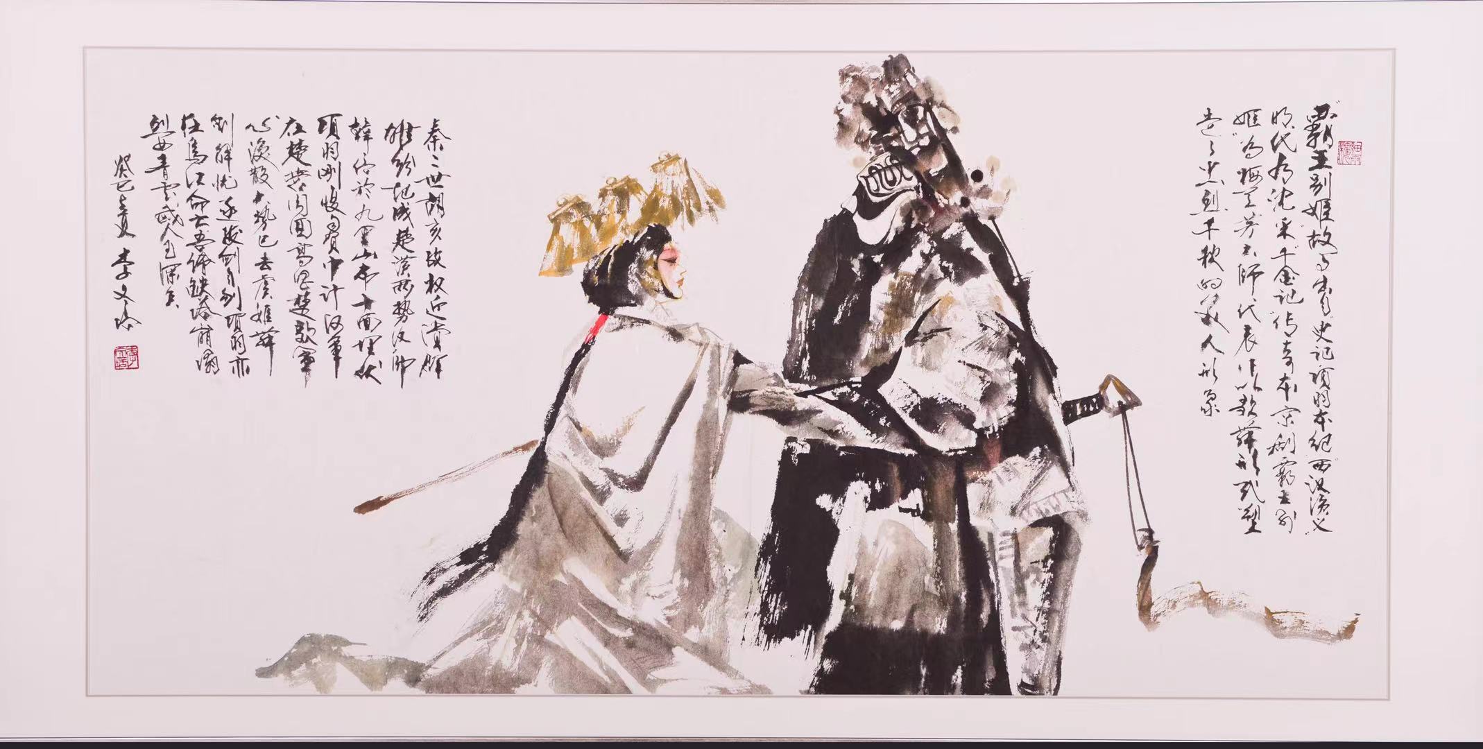 此剧为经典,梅兰芳、杨小楼、金少山演得荡气回肠。此画浓墨与淡墨强烈对比,留下难忘的印象。