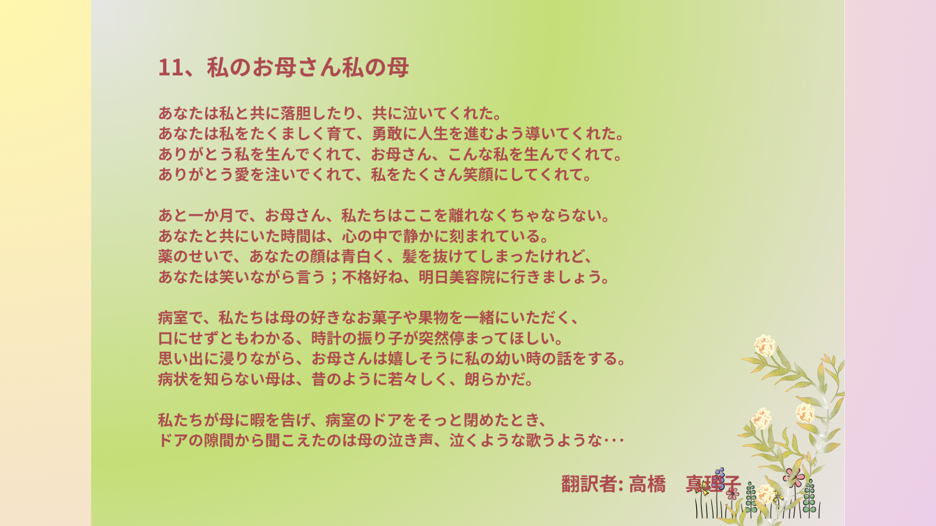 谢谢你倾注的爱,妈妈给予我的笑容有那么多。
