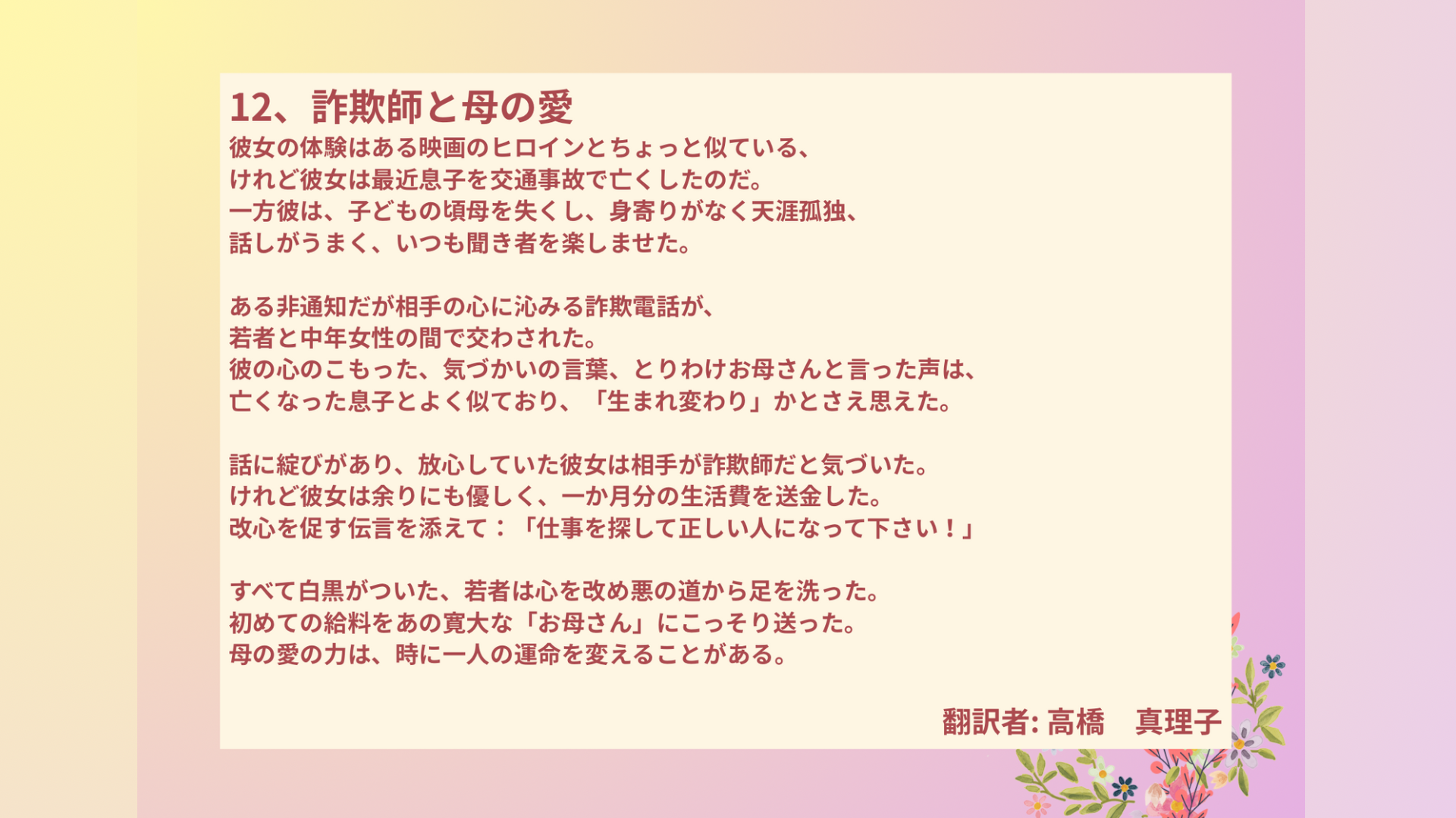 他情意切切,问寒嘘暖,特别是叫妈妈时,