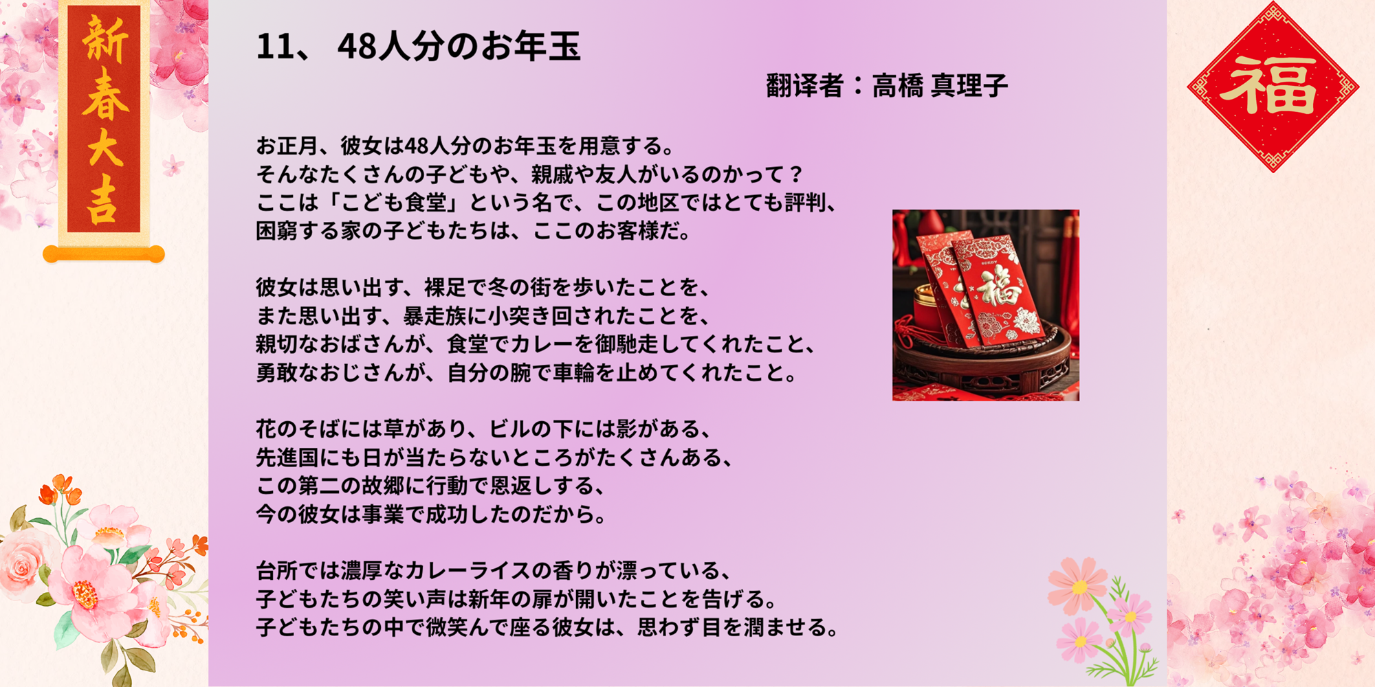 过年的时候,她准备了四十八份压岁钱,