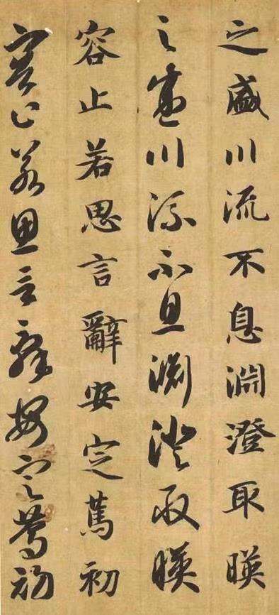 从书宗二王的初唐四家至中晚唐的颜柳,尤其是颜真卿,创造了楷书的极则。相形而言,提出“心正则字正”的柳公权,其书法名气虽大,实质却是欧阳询与颜真卿的风格综合体,楷书真正的顶峰实称颜真卿。他完全摆脱了二王书风流美秀逸的影响,将初唐四家宗二王之“陈”一变而为雄壮开张,将潇洒秀逸的魏晋风度化作庄严堂皇的大唐气象。这就是苏东坡何以称“书至颜真卿,天下之能事毕矣”的原因,亦是展览称颜为“超越王羲之的名笔”的原因。换言之,从王羲之到颜真卿,完成了从今草到正楷的转变,有着文字学意义上的书体建设与审美意义上书风变迁的双重意义。