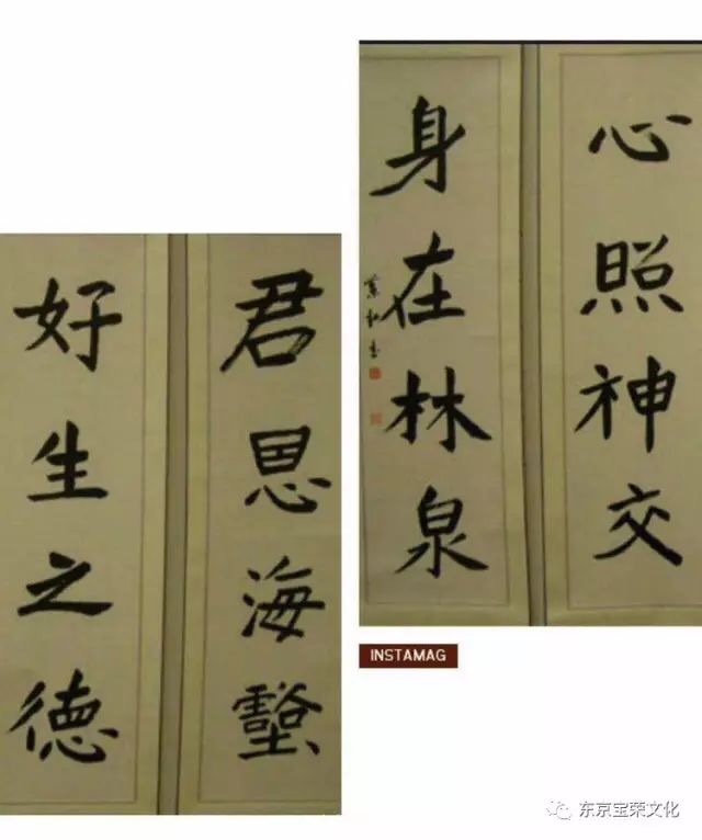 坂田女士给王若羽写信,大都使用的是毛笔,字迹工整,秀丽。王若羽在后来的来信中不无感概地说,先生的字写得很是正宗,并好奇地询问是受到哪位名师的指点。现年八十三岁的坂田女士十八年前开始学习中国古典书法,她倡导的书法教室以书为媒,聘请在日中国书法家做老师,学员已从十几位发展到了近百位。上野东京美术馆近日正在举办“国际书法艺术展”,在一个不起眼的角落里,人们可以看到坂田女士书写的“心照神交”四条屏的作品。一个八十三岁的日本老太太,竟然把中国晋代潘岳的诗句写的如此得心应手,游刃有余,实在是叫人叹为观止。