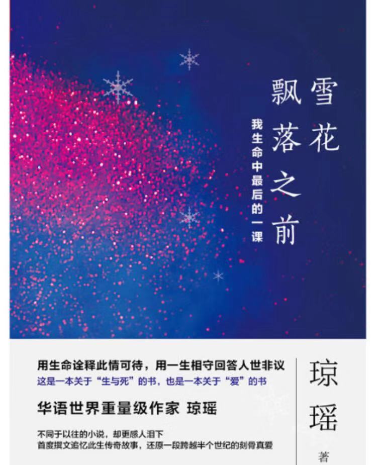 今天记不清何时?怎么弄来的这本“雪花飘落之前”一一我生命中最后的一课的书?一本琼瑶在自己晚年生命中的自传体小说。放在事务所陋室的沙发茶几的书堆上。拿来顺手一读,一读一发不可收拾,爱不释手。