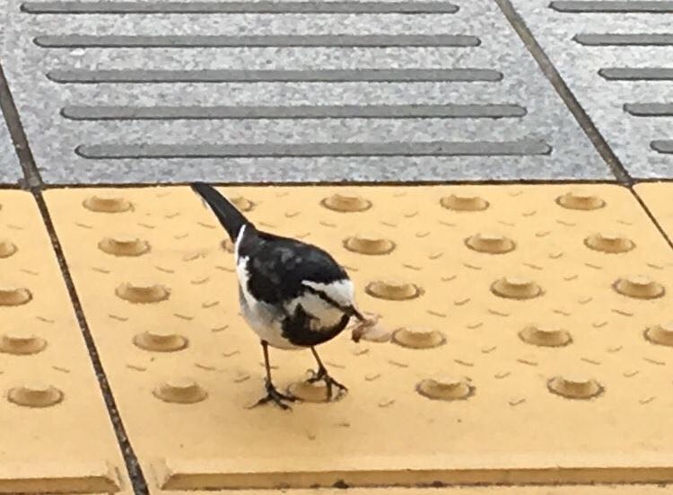 前些天,在小田急线的月台上,看见一只美丽的小鸟。我情不自禁地走近了它,很想与小鸟说二句话。