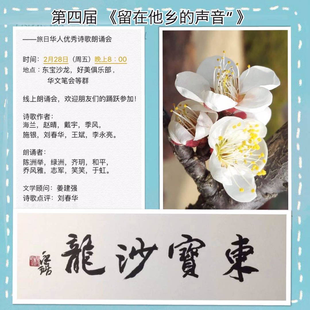 第四届“留在他乡的声音”---旅日优秀华人诗歌朗诵会 (2.28)