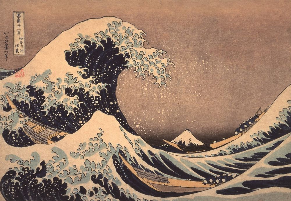葛飾北斎「冨嶽三十六景 神奈川沖浪裏」江戸時代/天保2-4年(1831-33)頃 大判錦絵。横浜本牧沖から見た富士山を描いたとされる作品です。