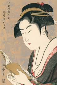 日本浮世绘 《読書の女》 作者:喜多川歌麿 江戸時代/寛政4-5年 (1792-3)