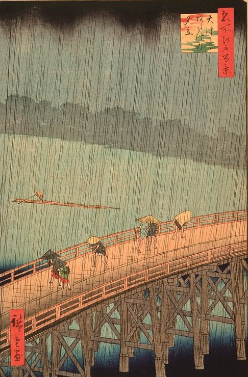 日本浮世绘「名所江戸百景 大はしあたけの夕立」歌川 広重(うたがわ ひろしげ、寛政9年(1797年) - 安政5年9月6日(1858年10月12日)は、江戸時代の浮世絵師。本名は安藤重右衛門。幼名を徳太郎、のち重右衛門。
